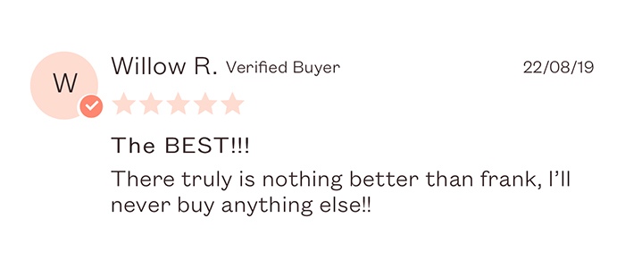 Babes all over the world have experienced #thefrankeffect. Their breakouts have cleared up, their stretchmarks have faded and their complexion glows. The best part is that you'll notice a difference in your skin immediately, and it only gets better with each use.