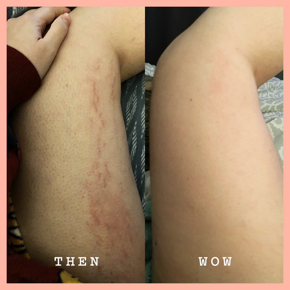 Your skin will immediately look and feel tighter, brighter and more even. You’ll notice dry patches are gone and it feels supple.