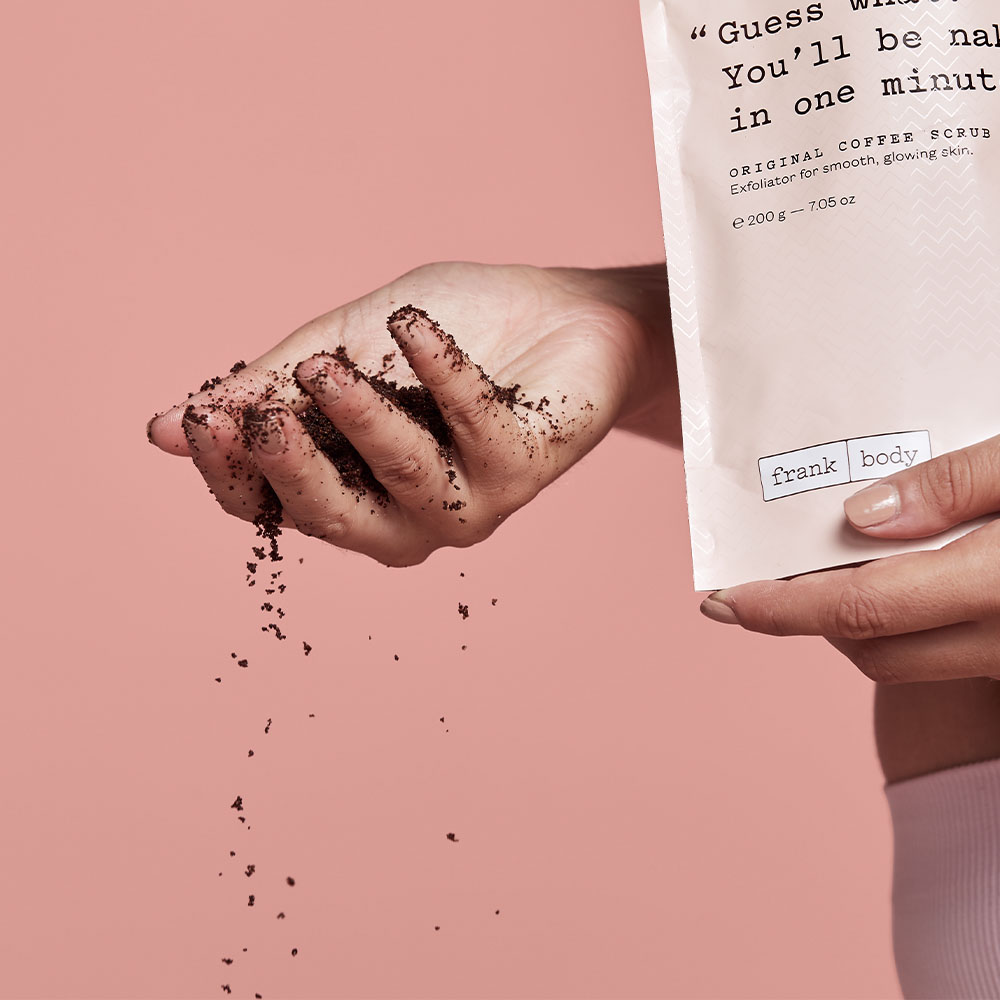 Once your skin is wet, cover your body in my Original Coffee Scrub. Scrub in circular motions for a few minutes, from top to toe.